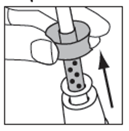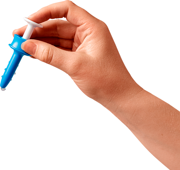 Étape4. Insérez la partie bleue (B) dans l’anus puis appuyez sur la partie blanche (A) pour libérer Hemoproct® Gel dans la zone affectée.