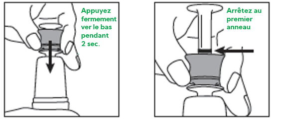 Étape2. Tout en tenant la bombe, appuyez fermement sur la partie bleue (B) (vous entendez un sifflement) jusqu’à ce qu’un anneau apparaisse sur la partie blanche (A). Cela prend généralement 2 secondes. Vous remarquerez que la partie blanche (A) s’est automatiquement déplacée vers le haut. L’applicateur est désormais chargé et prêt à l’emploi.